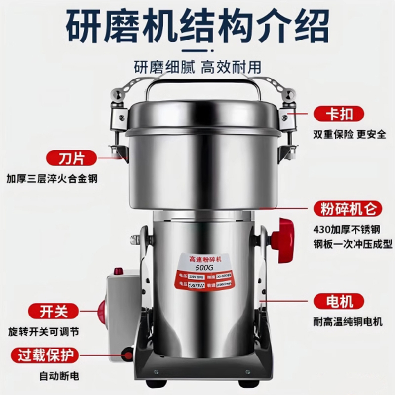 刀片為合金鋼材質(zhì),功率大制樣粒度均勻,樣品粉碎粒度可達(dá)30-300目。